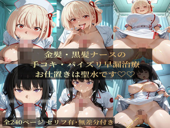 【エロ同人】金髪・黒髪ナースの手コキ・ハ?イス?リ早漏治療